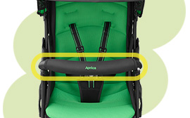ง่ายต่การอุ้มลูกน้อยขึ้น-ลงรถเข็น ที่กั้นหน้ารถเข็นสามารถเปิดออกได้เพื่อความสะดวก